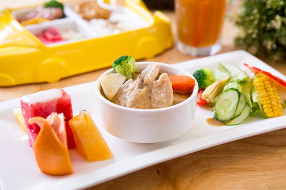 專為孩子設計的餐點,可愛的小車車裝載豐富的食物,吸引孩童的目光,邊吃邊玩,越吃越開心。